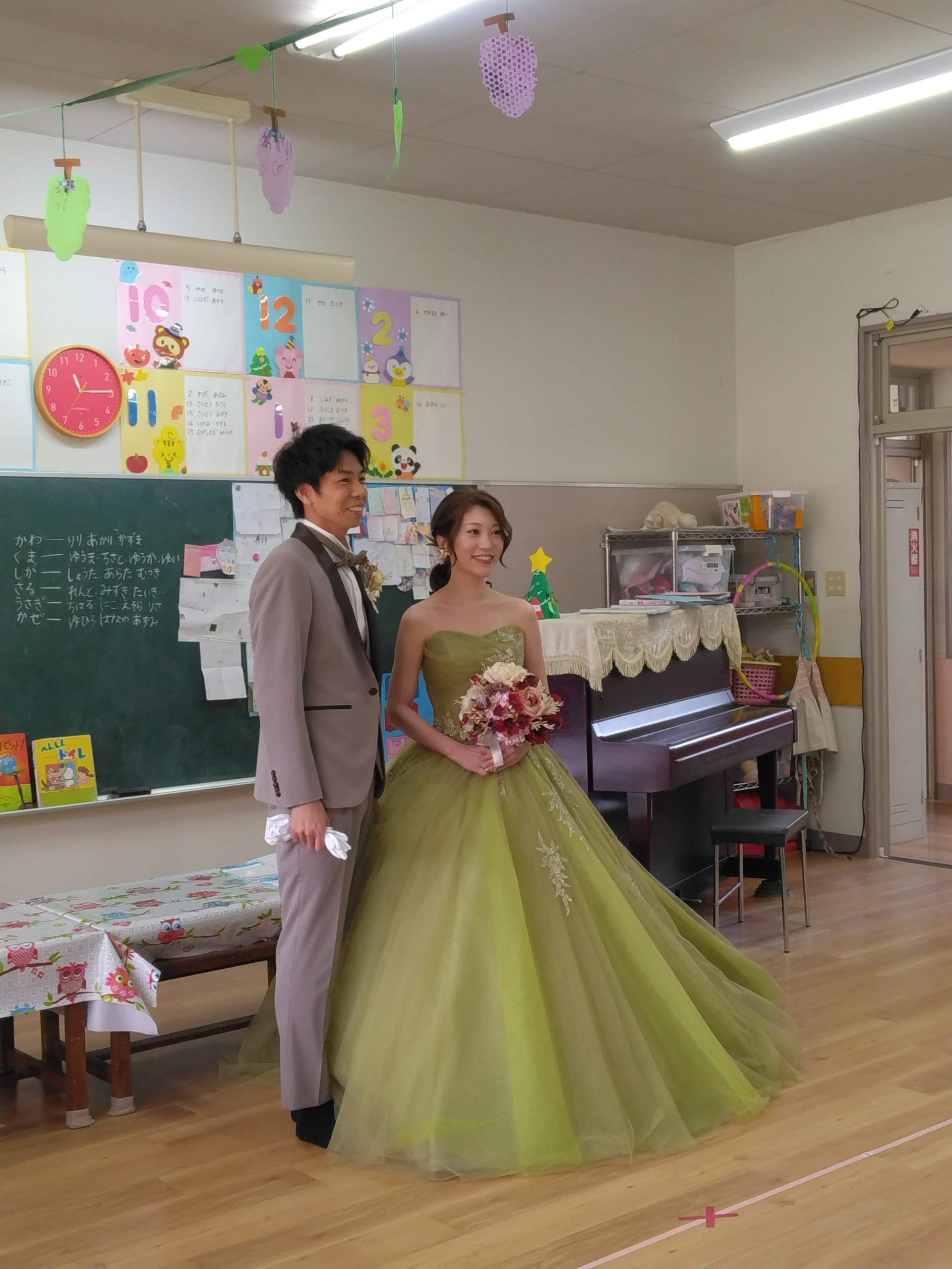 何と!!いずみ幼稚園の同級生が、この度結婚することになりました。 そして、嬉しいことに、幼稚園で記念撮影をしてくれたのです! 昔遊んだ象さんの滑り台、友達と保育を受けた教室、いろいろなことを 懐かしく感じてくれたようでした。 子どもたちも大喜び!!「お姫様がきてくれたよ!」と、目をキラキラさせて、 お迎えのママたちに興奮気気味に報告していました。 素敵なお婿さん、お嫁さんになったふたり。 いずみ幼稚園が繋いだご縁だと、信じています。 どうかお幸せに!!!!!