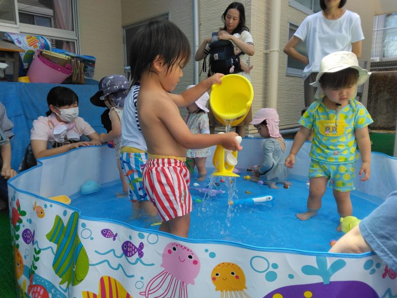 体がほぐれたら、水遊び開始!!可愛いおもちゃも一緒です♬